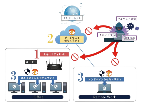 インターネットの出入口を監視・防御。外出先・在宅も安全。